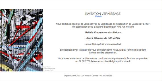 Du 24 mars 2015 au 26 juin 2015, nous avons eu l'honneur d'exposer Jacques RENOIR sur la thème: